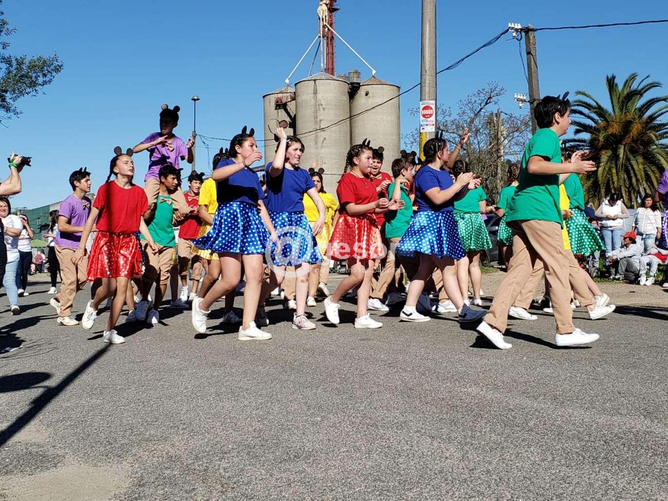 El despliegue de colorido y alegría de los jóvenes es acompañado por el aplauso del público respaldando el trabajo realizado.