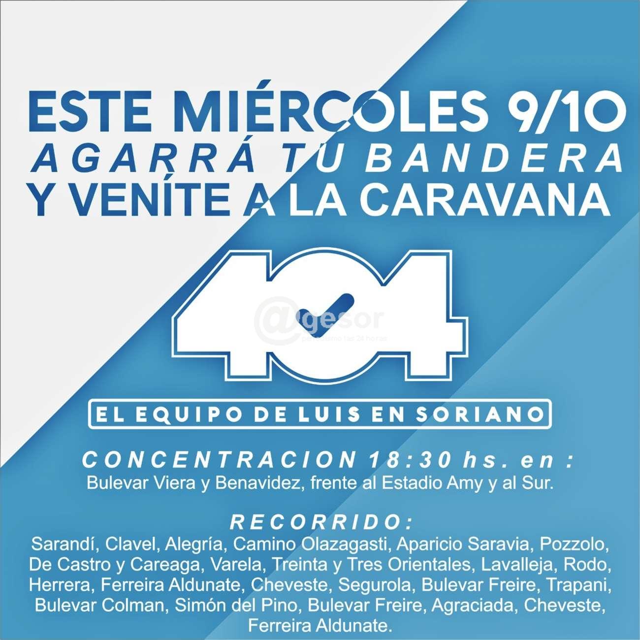 Este miércoles 9, agarrá tu bandera y venite a la caravana, invita 404 EL EQUIPO DE LUIS EN SORIANO