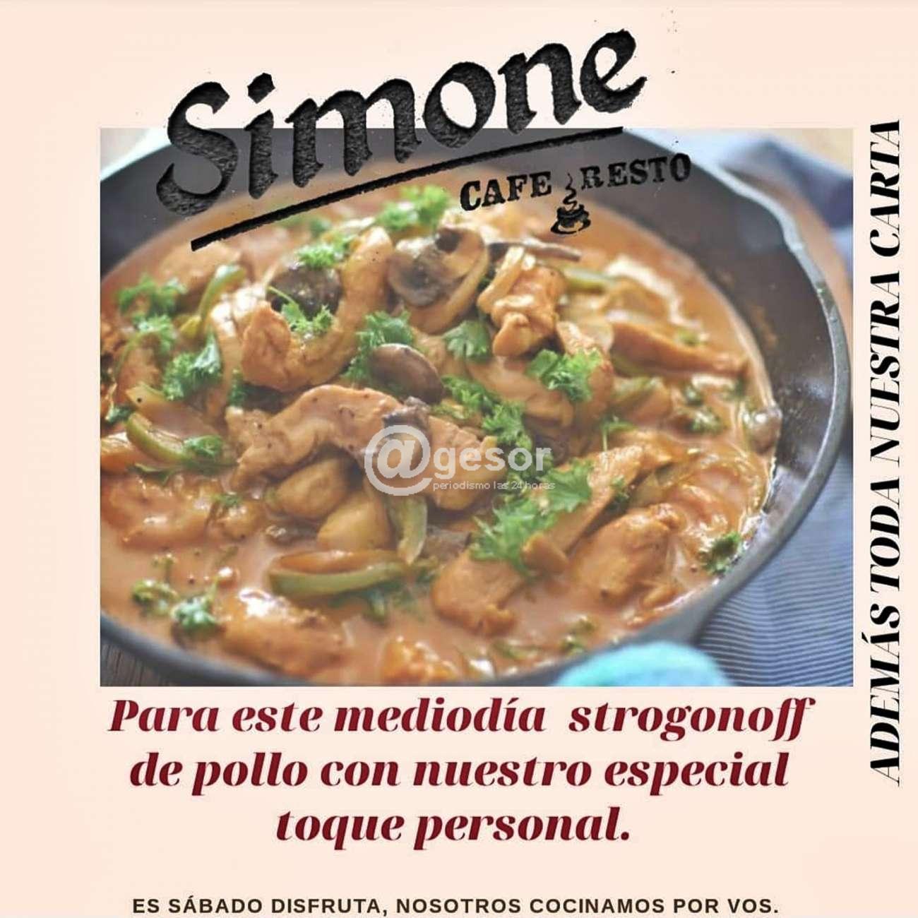 Este sábado en SIMONE Café & Resto te invitamos a disfrutar del sábado, nosotros cocinamos por vos, al mediodía strogonff de pollo con nuestro especial toque personal. Te esperamos en el local de avda. Lavalleja y Sánchez de Mercedes, además contamos con toda nuestra carta. Tel. 4533 8713, cel. 097 957 262 o comunicate por nuestra redes sociales en Facebook e Instagram.
