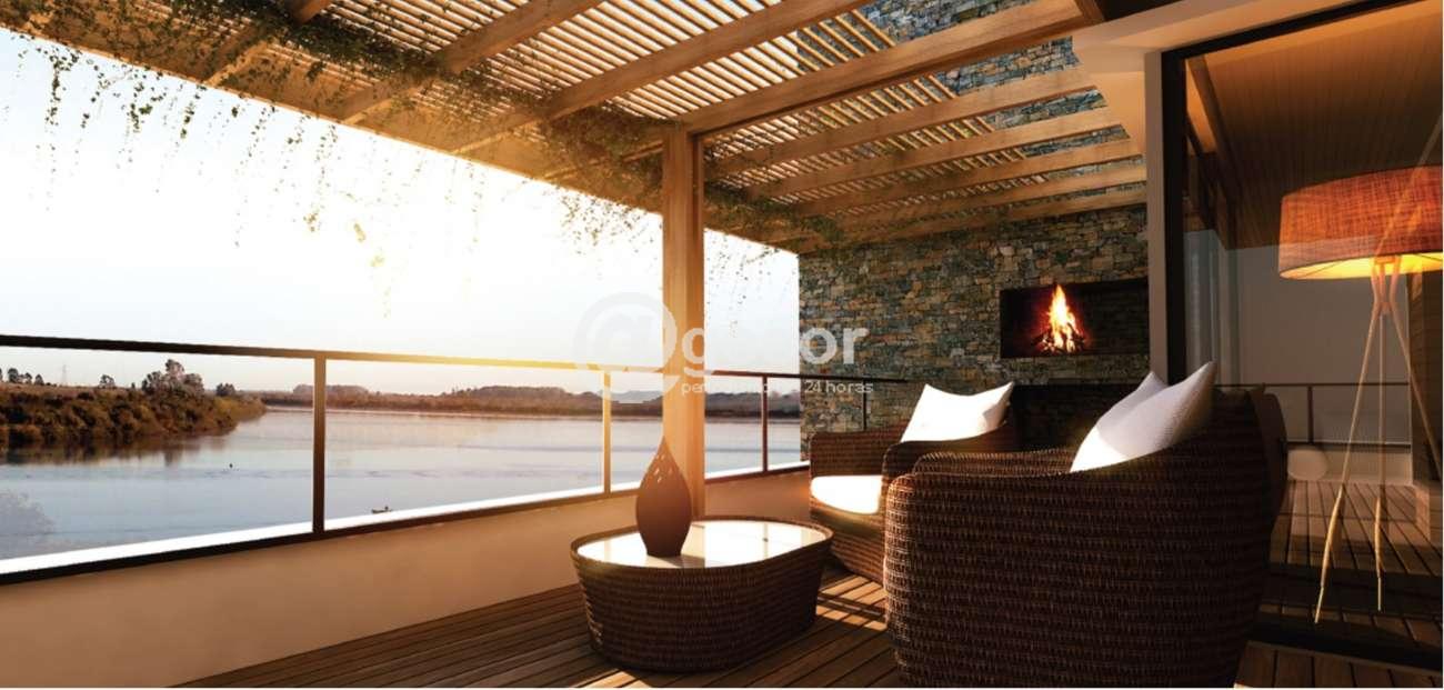 "Sí, por supuesto. En el estudio de mercado, los apartamentos no tenían estufa a leña interiores, sí parrilleros, el cien por ciento de los entrevistados dijeron que querían estufas a leña, tenían toilettes (baño social) y nadie lo quería, y tienen otras características que en el estudio de mercado la gente lo valoró mucho, las bondades arquitectónicas, todos los apartamentos tienen vista al Norte y al Sur, los dormitorios principales, la recepción, living comedor todos tienen vista al río Negro (al Norte), lo demás, cocina, los dormitorios secundarios tienen vista hacia el Sur conventanales hacia la cancha de golf. Todos tienen doble vidrio en todas las aberturas, muy buenas terrazas, amplias, todos con parrileros, losa radiante por ambiente, puede encenderse por ambiente, en todos los apartamentos se va a dejar la instalación para los equipos de aire acondicionado para no tener que romper y que no se pingan en cualquier lado, va a estar planificado el lugar, cuidando lo arquitectónico".