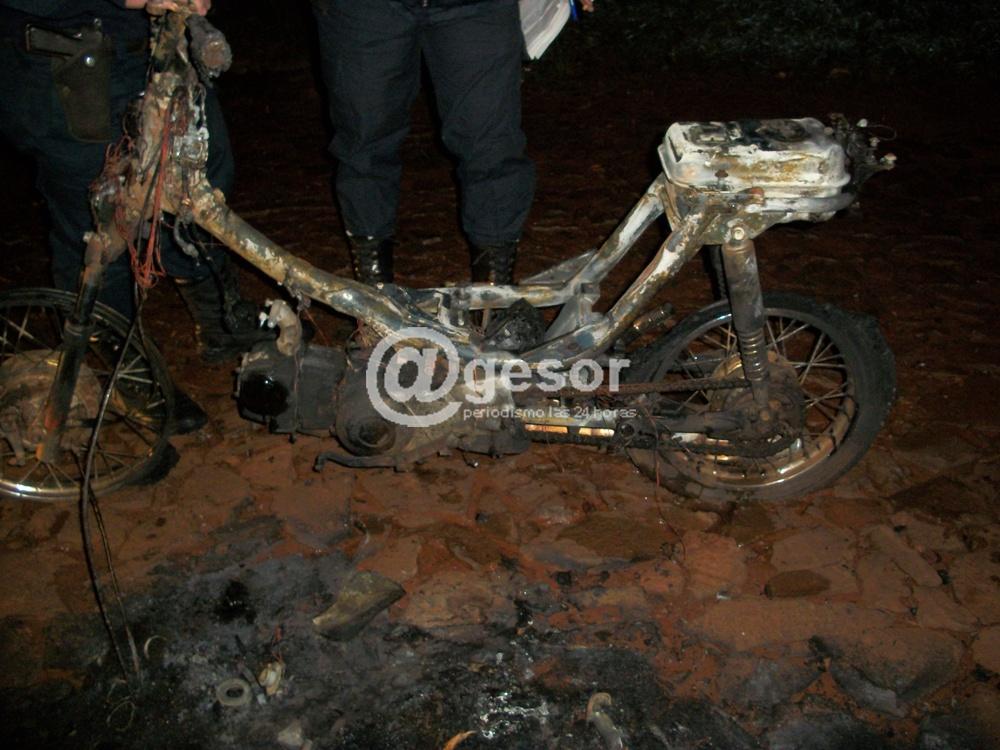 El destacamento de Bomberos local fue alertado sobre las 23.30 de este lunes, por el incendio de una moto Winner Vipro, en una finca del barrio Artigas.
