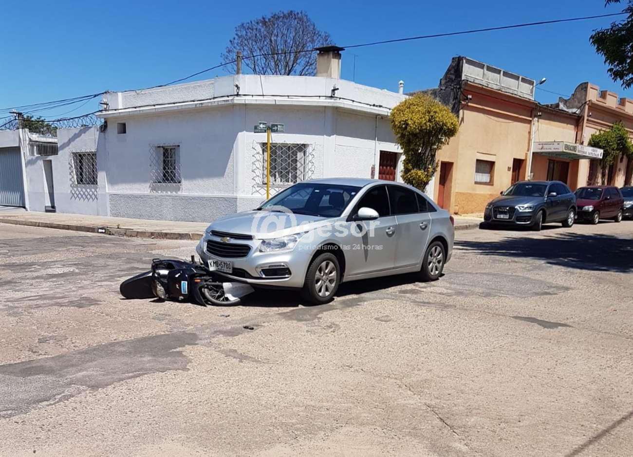 Próximo a las 12.20 horas de este viernes se produjo siniestro de tránsito en la intersección de calles Ferrería y Gomensoro de Mercedes. Por la primera de las arterias nombradas circulaba automóvil conducida por masculino mayor de edad, mientras que por la segunda lo hacía moto en la viajaba como única ocupante una mujer también mayor de edad. A raíz de la colisión, la femenina sufrió lesiones que determinaron su traslado a centro asistencial para mejor atención, siendo el diagnóstico primario de probable fractura de clavícula, la que se debía confirmar tras los estudios correspondientes.