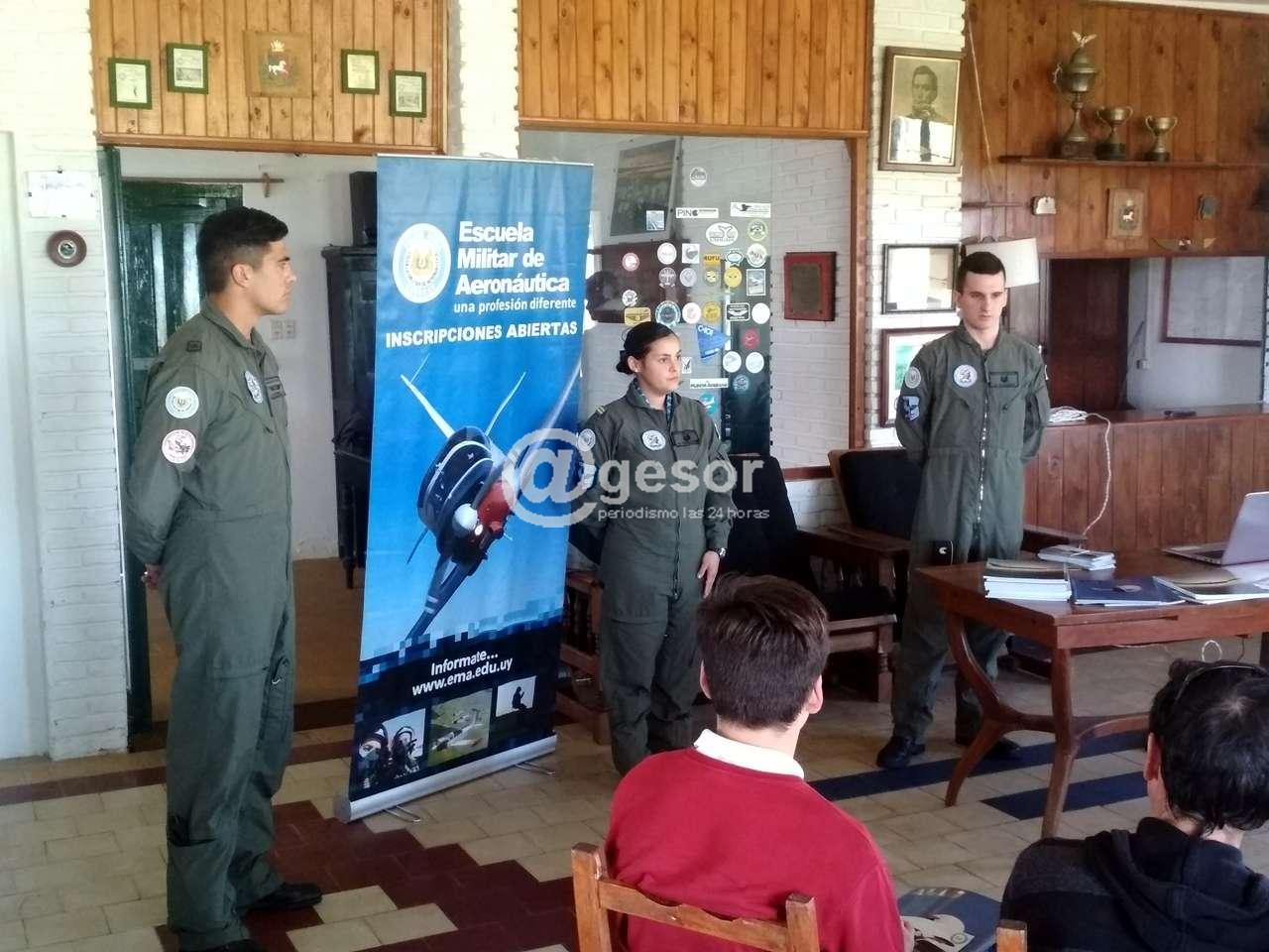 Con una buena presencia de jóvenes se realizó este martes en Mercedes una charla sobre la oferta educativa de la Fuerza Aérea Uruguaya.