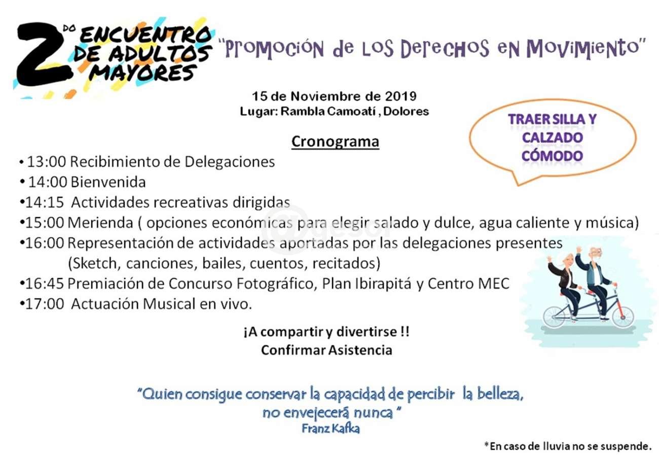 El 15 de noviembre se realiza en Dolores el 2º Encuentro de Adultos Mayores. La actividad se desarrollará en horas de la tarde, siendo abierto a toda la comunidad.