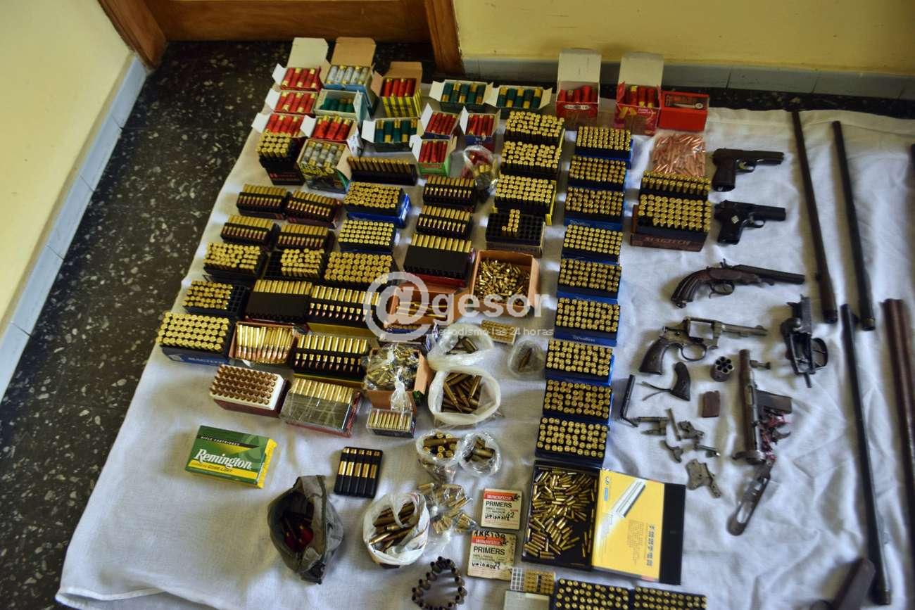 16 armas de fuego: 3 escopetas, 8 rifles, 2 pistolas, 2 revolver, 1 pistolón, 6 caños de diferentes calibres