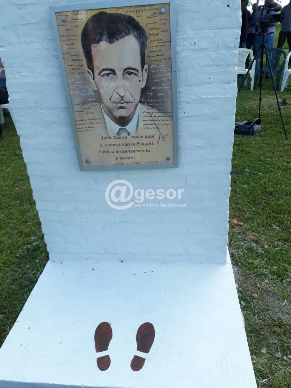 A 111 años del nacimiento, en la localidad que lo vio nacer, descubrieron un  memorial  en homenaje al maestro julio Castro. Fue este miércoles 13 de  noviembre donde la comunidad de la Escuela N° 9 de La Cruz (ruta 5, kilómetro 116, Florida) descubrió un memorial para recordarlo.