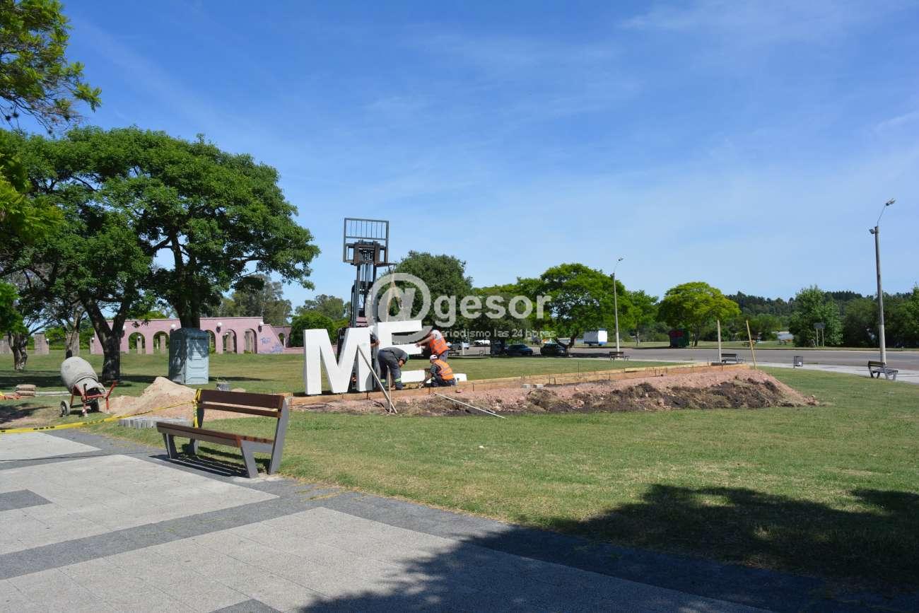 Para ello se trabajó en el movimiento de tierra para conformar un talud sobre el que se vienen instalando las letras de hormigón. Es en el sector situado en la esquina Este, en paralelo a la conectora de la Av. Luis A. de Herrera y la rambla Carlos F. Sáez.