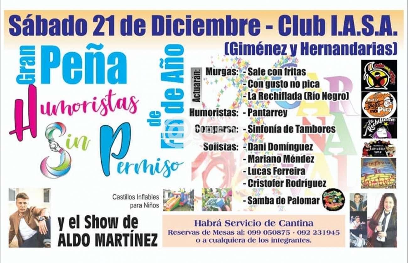 Con la presencia toda la noche del gran Aldo Martínez, Humoristas Sin Permiso despide el 2019. Será el sábado 21 de diciembre, desde las 20, 30 horas, en el Club Sud América (IASA).