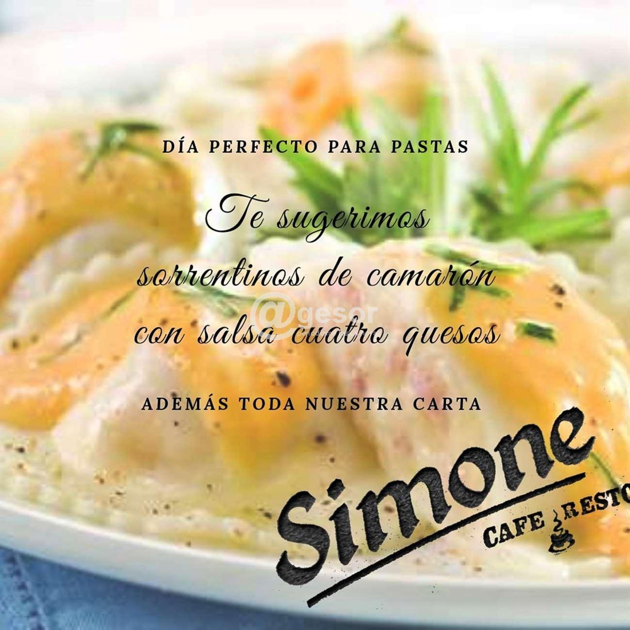 En SIMONE Café & Resto te ofrecemos un día perfecto para pastas, sugiriéndote sorrentinos de camarón con salsa cuatro quesos. Además de toda nuestra carta en el local de avda. Lavalleja y Sánchez en Mercedes, pudiendo hacer la reserva de tu lugar a través de las redes sociales como también del tel. 4533 8713 o el cel. 097 957 262.