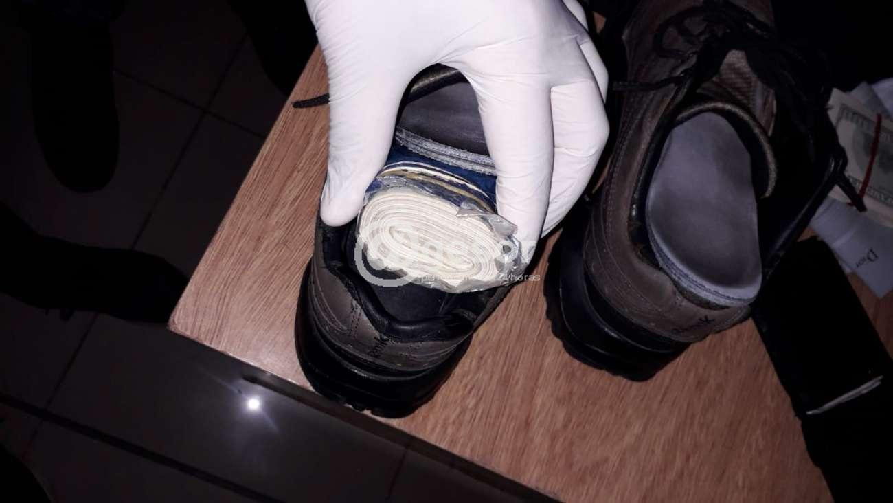 En total fue incautada la suma de 40.131 dólares americanos ocultos en ambos zapatos y 4.515 pesos argentinos que guardaba en sus bolsillos.
