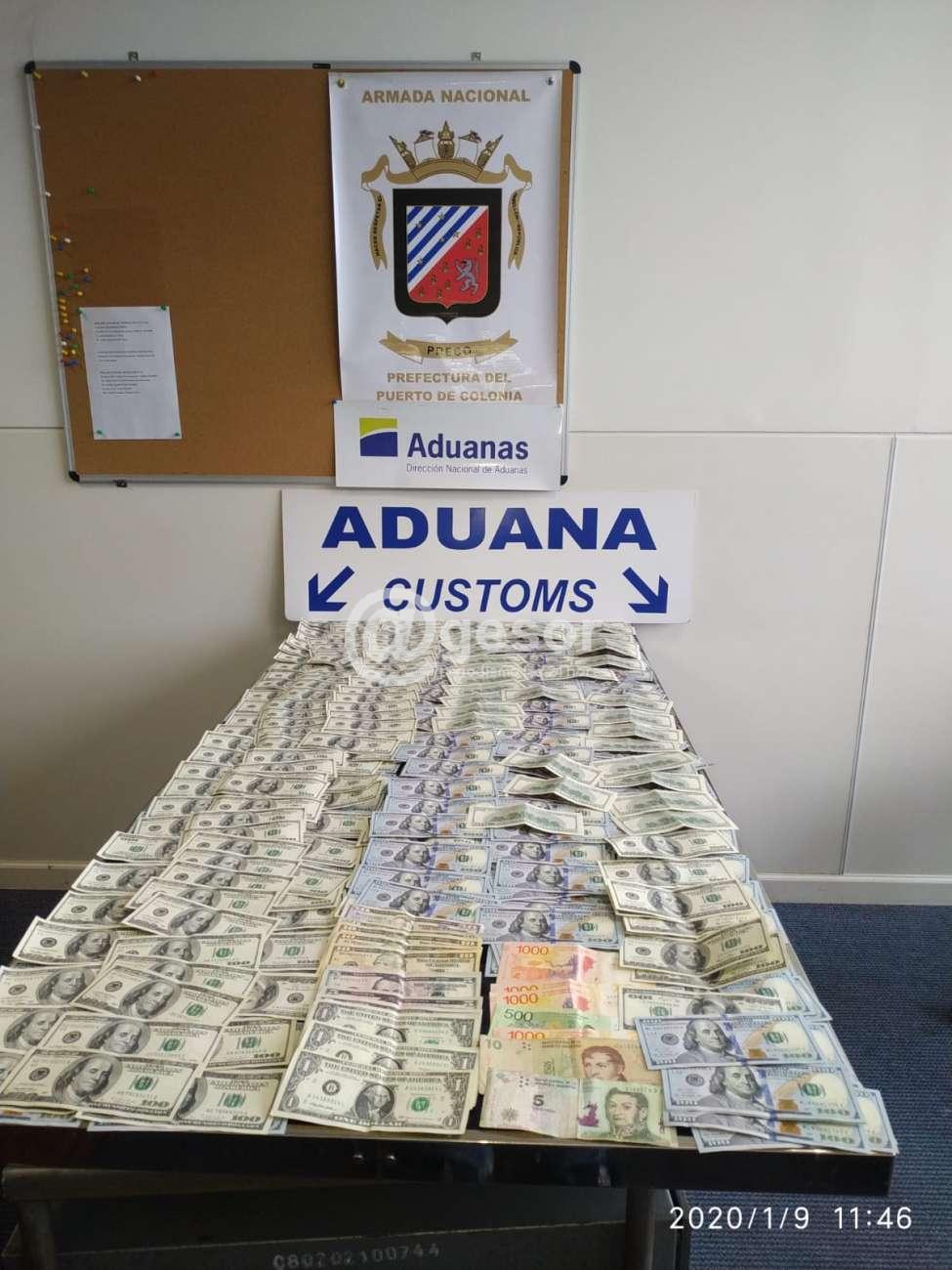En el Puerto de Colonia fue detenido un ciudadano argentino que intentaba ingresar al país con dinero sin declarar, oculto en sus zapatos. El procedimiento contó con la participación de funcionarios de la Administración de Aduanas de Colonia y Prefectura Nacional Naval.