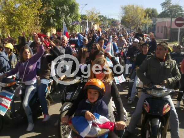 La caravana que  está celebrando el triunfo de Soriano continúa recorriendo la ciudad.En toda clase de vehículos y especialmente en motos los mercedarios están acompañando a los campeones del interior. El plantel campeón ya ha recorrido los barrios Lavalleja, Túnel, Treinta y Tres Orientales, Asencio y Bulevar Viera y Benavídez. En todos los barrios la gente sale a saludarlos con visible emoción.