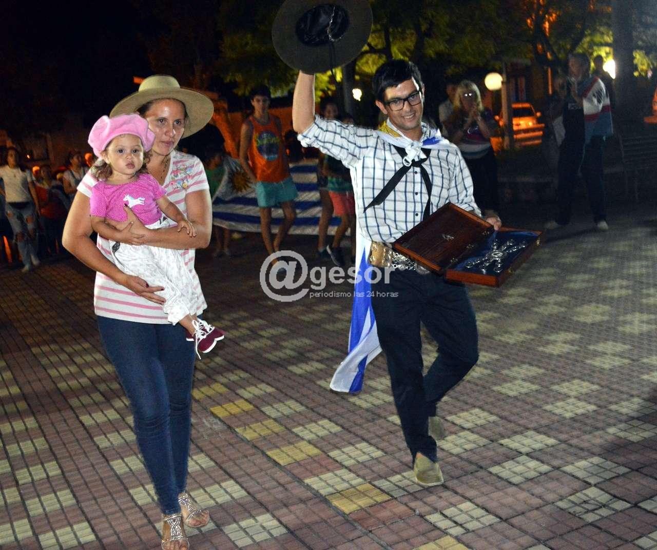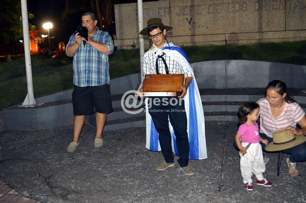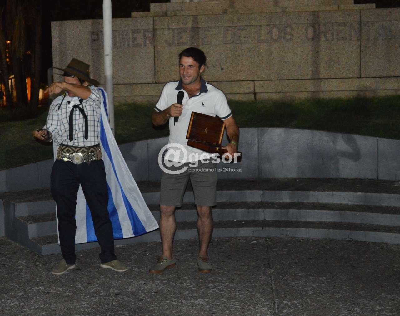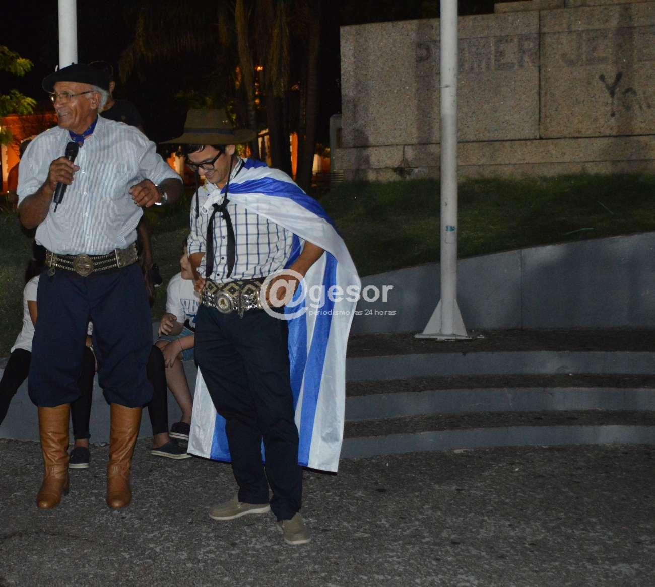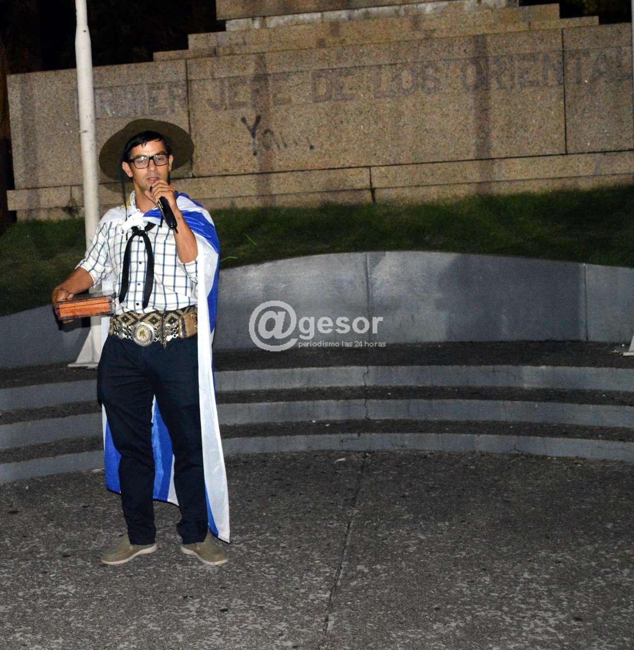 En plaza Artigas en la noche de este lunes luego de entonar las estrofas del himno nacional uruguayo," como muestra de tradición e identidad" según palabras del maestro profesor Oscar Gilardoni Gandolfo conductor de la instancia de homenaje.