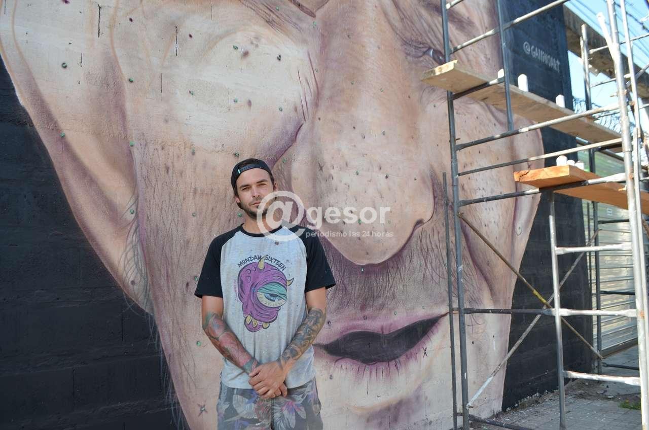 Llegó a Mercedes a participar del Festival 33 grados de arte urbano y en un muro de importantes dimensiones retrató a Coyita, personaje popular y querido de esta ciudad.