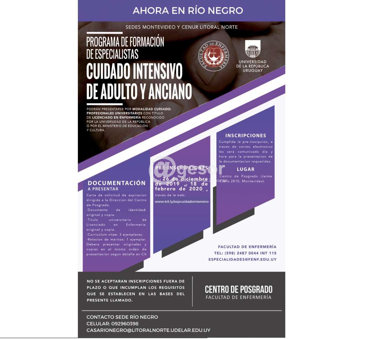 La Universidad de la República, en la Sede Río Negro del CenUR Litoral Norte, ofrece esta nueva opción de formación para profesionales universitarios con título de Licenciado en Enfermería reconocido por la Universidad de la República o por el Ministerio de Educación y Cultura.