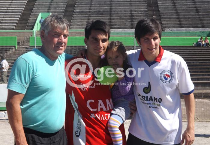 FOTO: Washington Hugo Sasén, a la izquierda, acompañado por Johan Salvador (con su hija en brazos) y Daniel Alexander Cano, tras regresar al Estadio Koster, luego de la titulación alcanzada en Melo.