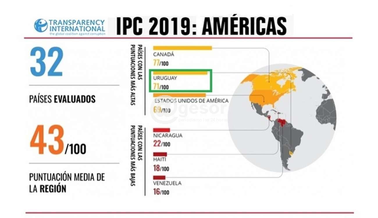 Uruguay avanzó dos lugares en el Índice de Percepción de la Corrupción 2019