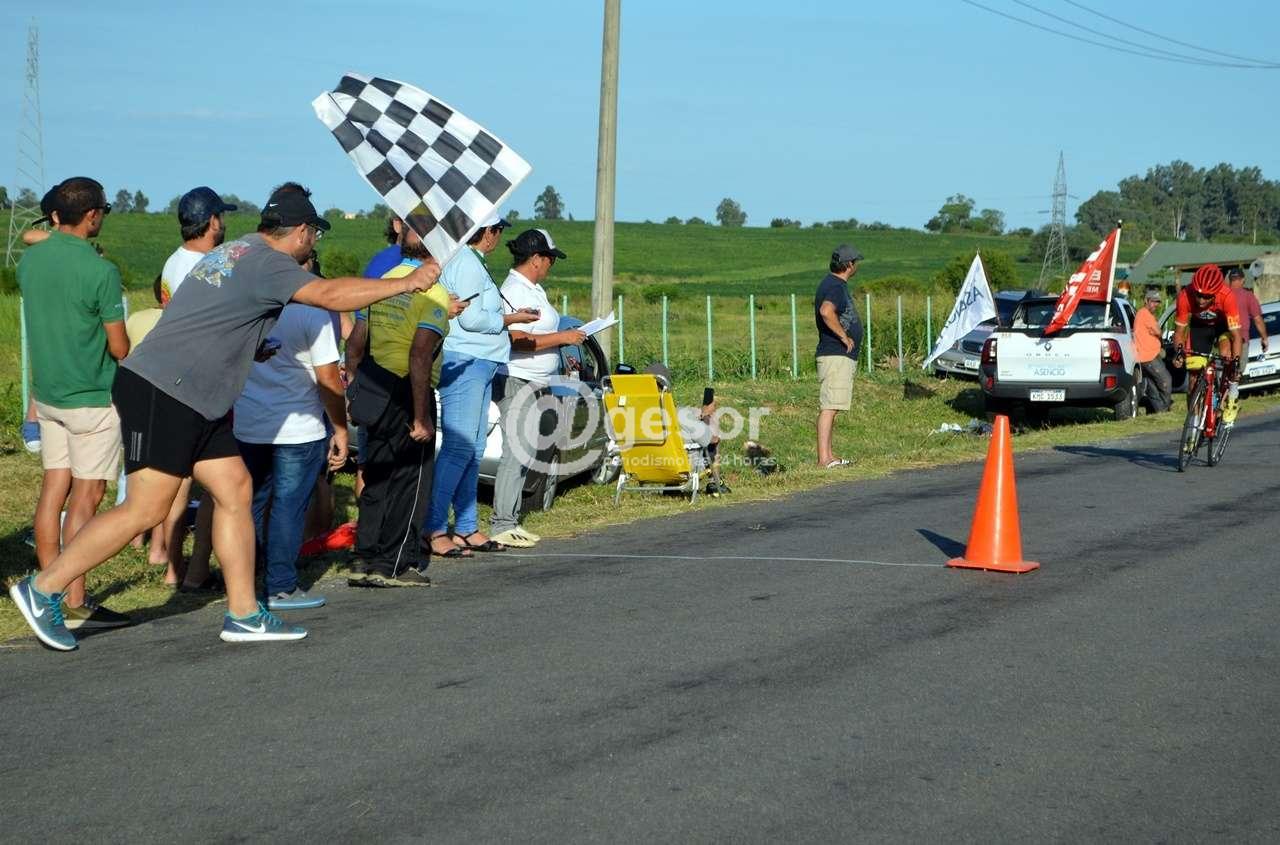 Segundo fue Sergio Fredes del Bike Sport Ladrillo Argentina que terminó a 8 segundos, a decir 10.25” y tercero Agustín Moreira, que viste la camiseta del Club Ciclista Cerro Largo, a 20’’, empleando 10.37’’.