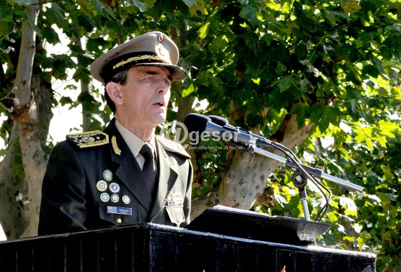 “Si bien nos preocupan las consecuencias de la aprobación de la ley modificativa del Sistema de Previsión Social Militar, que provoca sustantivos efectos en las fuerzas, el Ejército debe focalizar su atención y capacidades en la puesta en ejecución de la ley que encomienda a las fuerzas armadas realizar tareas de vigilancia y apoyar a otros organismos con jurisdicción y competencia en la zona fronteriza”, expresó Fregossi, único orador oficial de la ceremonia.