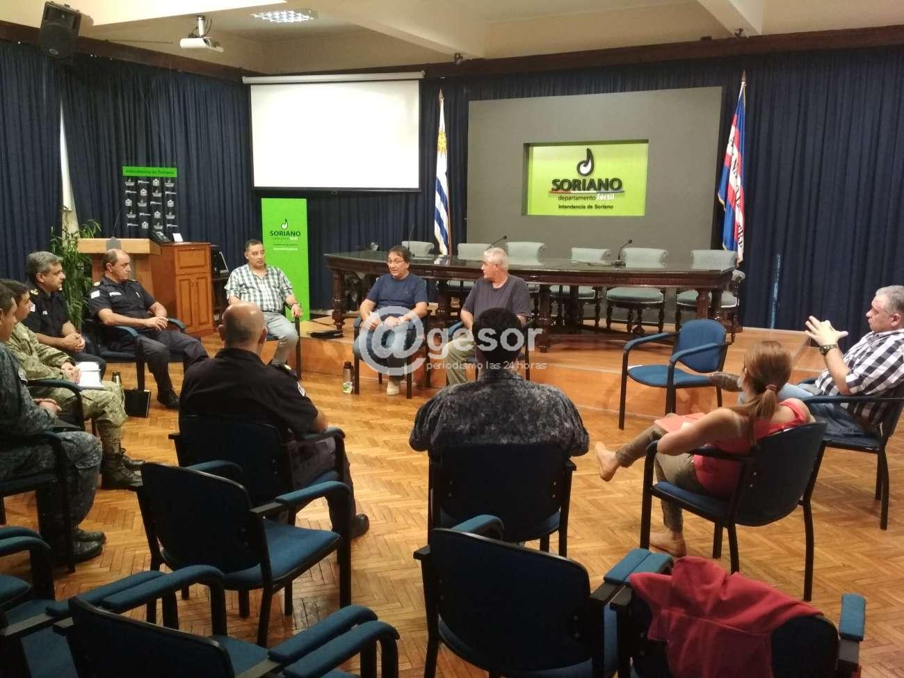 De la reunión de este domingo participaron representantes del Ejército, Policía, Bomberos, Prefectura Naval, MIDES, Salud Pública e Intendencia de Soriano.