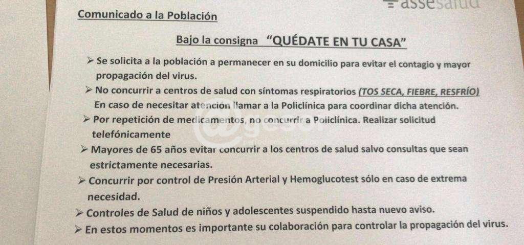 3- Se suspenden policlínicas de repetición de medicamentos y consultas programadas. Las consultas ya agendadas se harán vía telefónica (los especialistas llamarán a los usuarios).