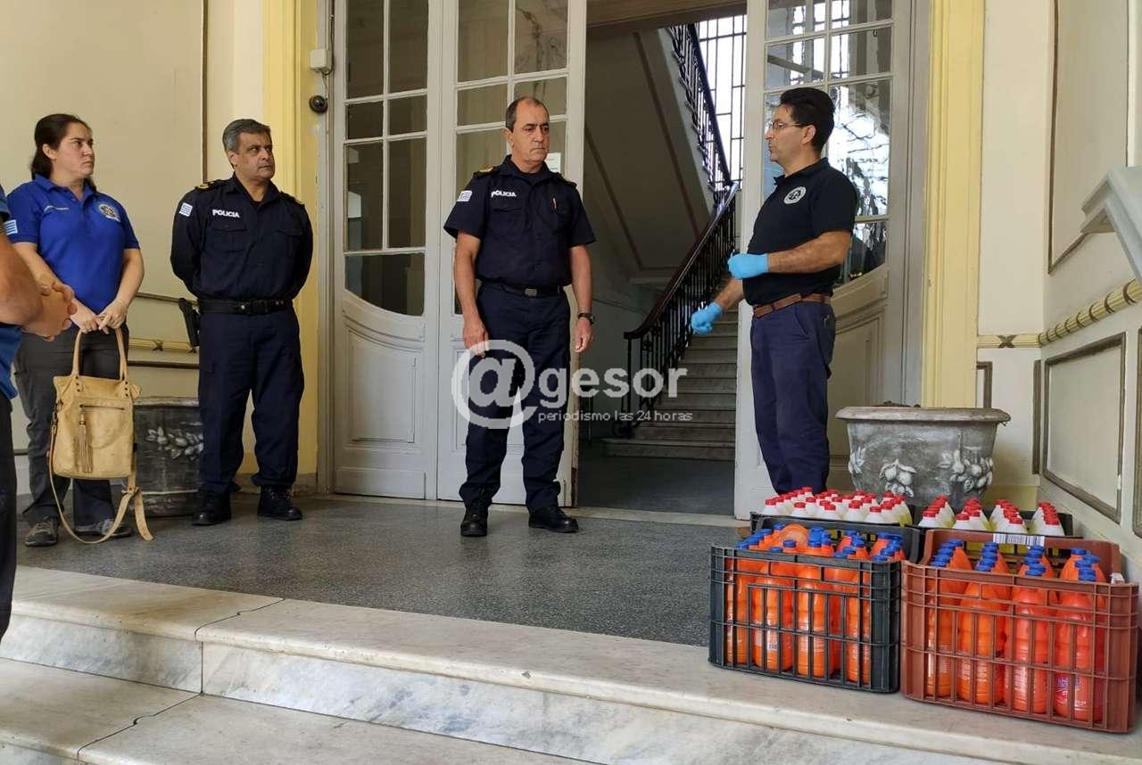 SUPU Sindicato Único de Policías del Uruguay hizo entrega de 50 litros de hipoclorito y 50 litros de jabón para hacer uso de todos los policías.