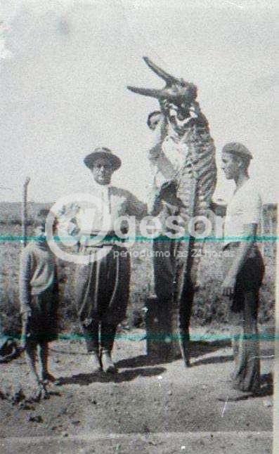 «Hoy de mañana será desembarcado en nuestro puerto, traído por el “Dorado” [vapor que hizo la carrera de Mercedes a la Boca del Yaguarí entre 1897 y 1930], un enorme caimán o sea yacaré, como vulgarmente se dice, que fue encontrado en los extensos pajonales próximos a la Villa de Soriano.