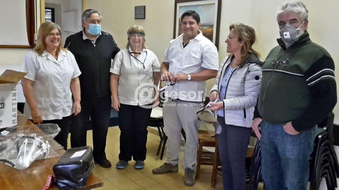 Este lunes, integrantes de la Directiva de Hogar Español Mercedes, su Presidente Ulises García y dirigente Néstor Sosa entregaron máscaras a las autoridades del Hospital Mercedes representadas por la Nut. Yaninna Mondada y el Dr. César Cresci, en su calidad de Directora y Sub Directora acompañados de otras profesionales.