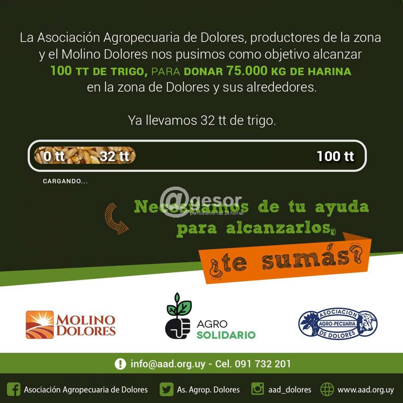 La Asociación Agropecuaria de Dolores, productores de la zona y el Molino Dolores se pusieron como objetivo alcanzar 100 toneladas de trigo para donar 75.000 kg de harina en la zona de Dolores y sus alrededores.