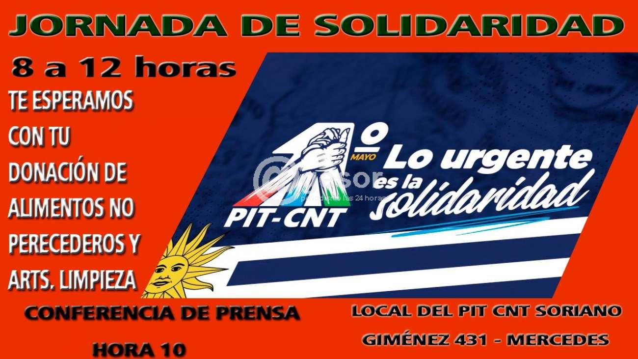 Bajo la  consigna "lo urgente es la solidaridad" el PIT CNT Soriano, desarrollará   la Jornada Solidaria, este 1º de mayo de 8 a 12 horas, en su  local de calle Giménez 431.