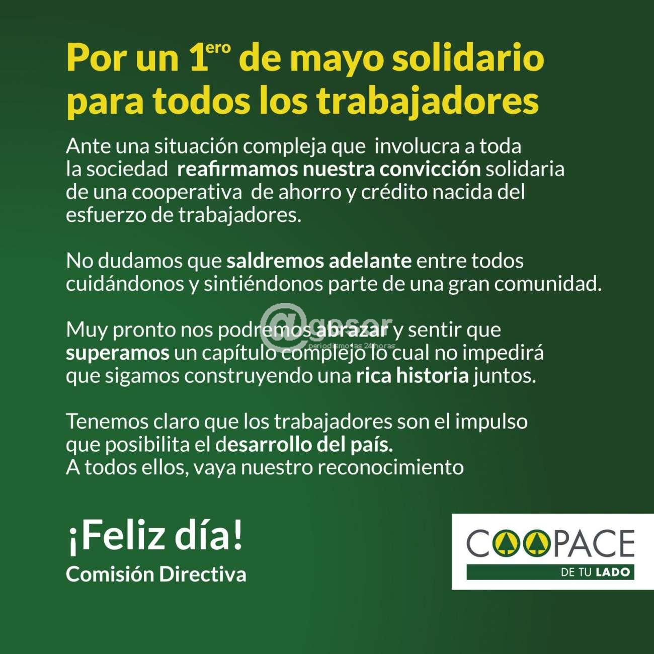 La Comision Directiva de Coopace emitió un saludo para todos los trabajadores, ante un nuevo 1º de Mayo.