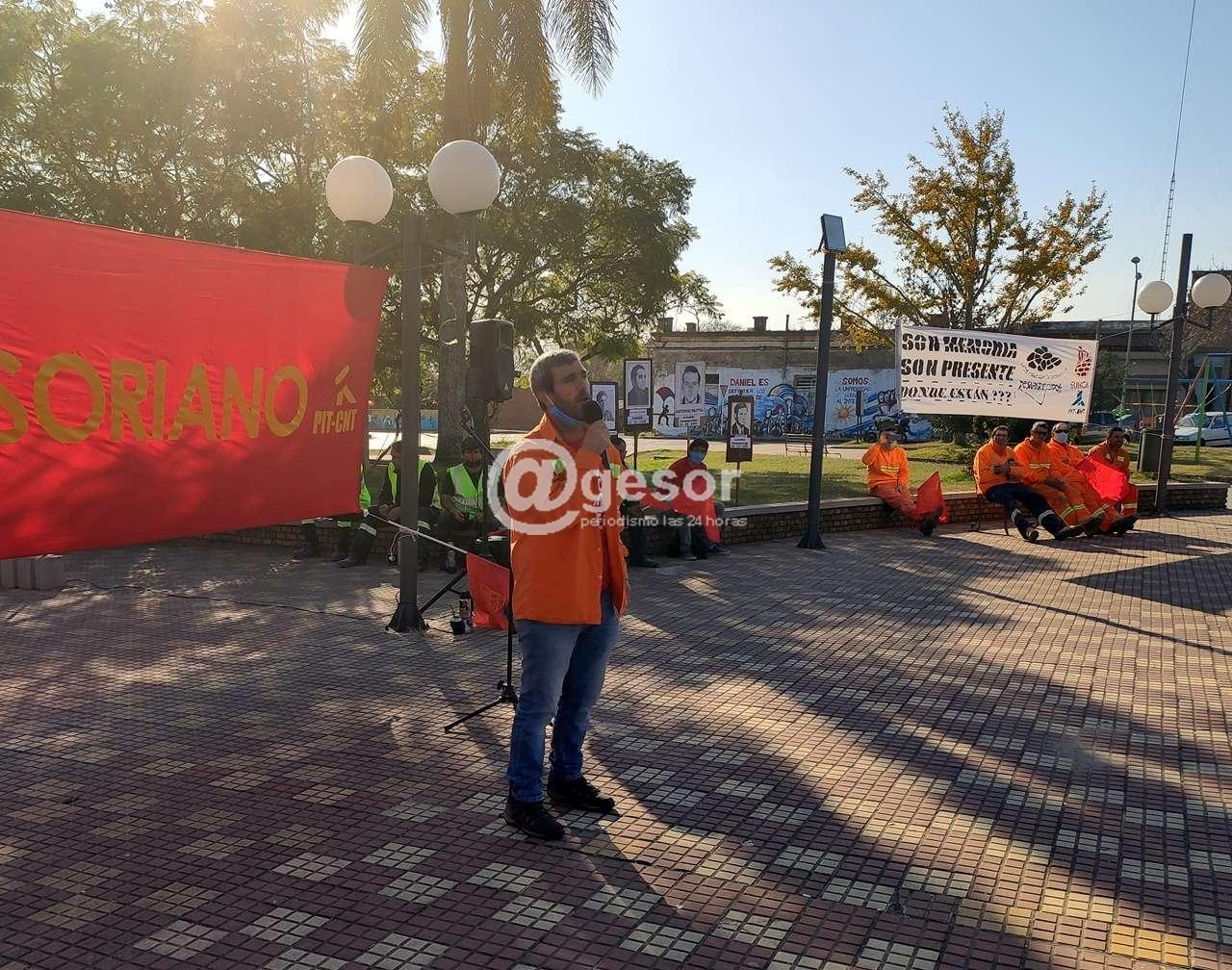 El acto en Mercedes contó presencia de trabajadores de otros puntos del departamento y varios oradores, entre ellos: Luis Arijón en representación de FUECY’S, Javier Díaz, integrante de la Dirección Nacional del SUNCA, Carolina Silva en representación del PIT CNT, entre otros.