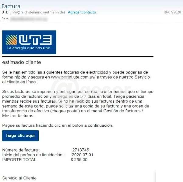 Por consiguiente, UTE alerta a sus clientes y a la población a evitar cualquier vínculo que amerite dudas en su origen y recomienda utilizar exclusivamente aquellos canales divulgados oportunamente por la empresa.