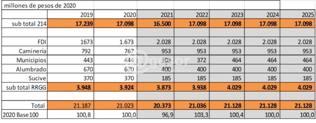 La propuesta apenas asegura, en 4 de los 5 años que cubre el Presupuesto Nacional ( 2022 a 2025), el mantenimiento de lo que las intendencias ya habían alcanzado en 2019 y que todavía tienen en 2020.