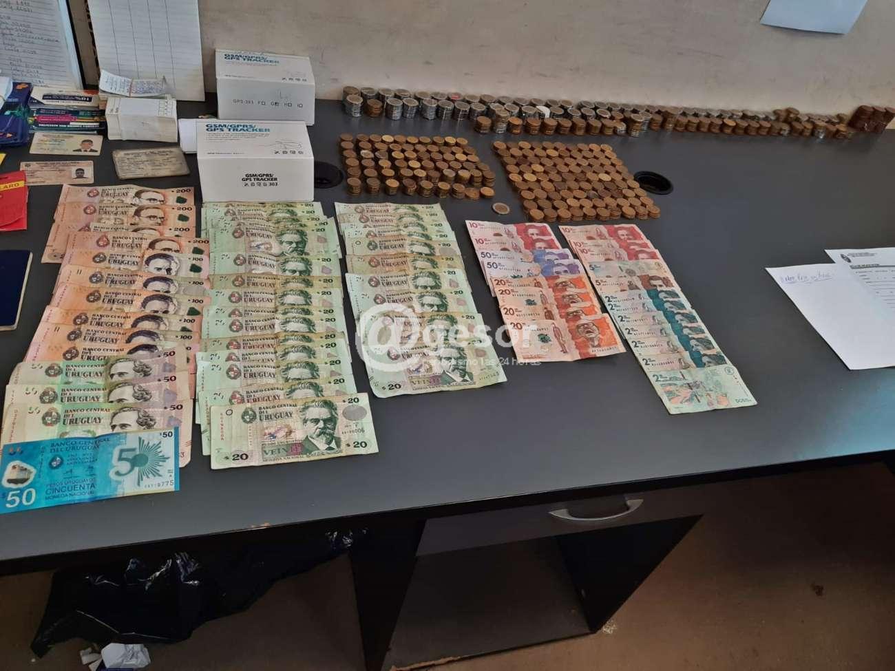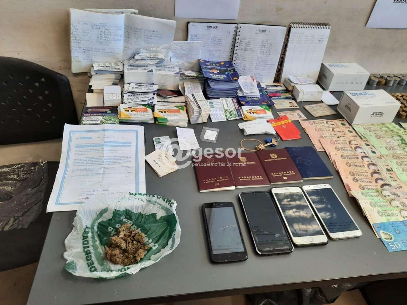 Con la información obtenida de la pericia que Policía Científica realizó de los celulares incautados se allanó el domicilio de los indagados donde se encontró: alrededor de 180.000 pesos uruguayos, 2.300 dólares, 254.000 pesos colombianos, una pistola calibre 9mm. con catorce balas de salva, once celulares, tres computadoras, 20 gramos de marihuana, así como calendarios de pago, tarjetas comerciales de prestamista, cuadernos con registros de los préstamos, varias publicaciones de préstamos de diversos tipos, un pasaporte, y un pendrive. Otros cuatro colombianos que se encontraban en la vivienda también fueron detenidos.