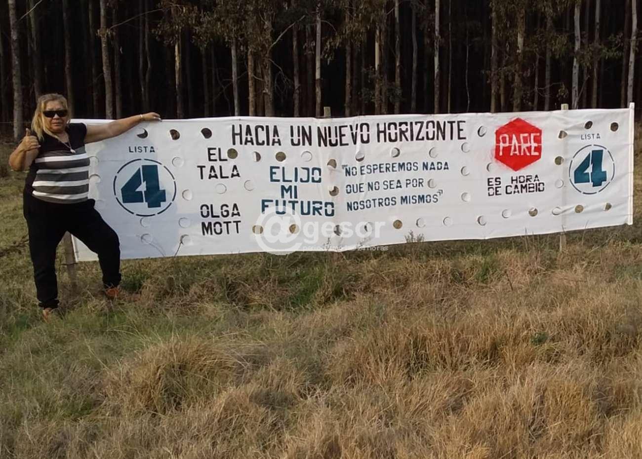 Otro tanto se hizo en la visita a El Tala donde se reunieron con vecinos de esta localidad y también se colocó cartelería, allí donde la Lista 4 tiene como referente a la vecina Olga Mott.