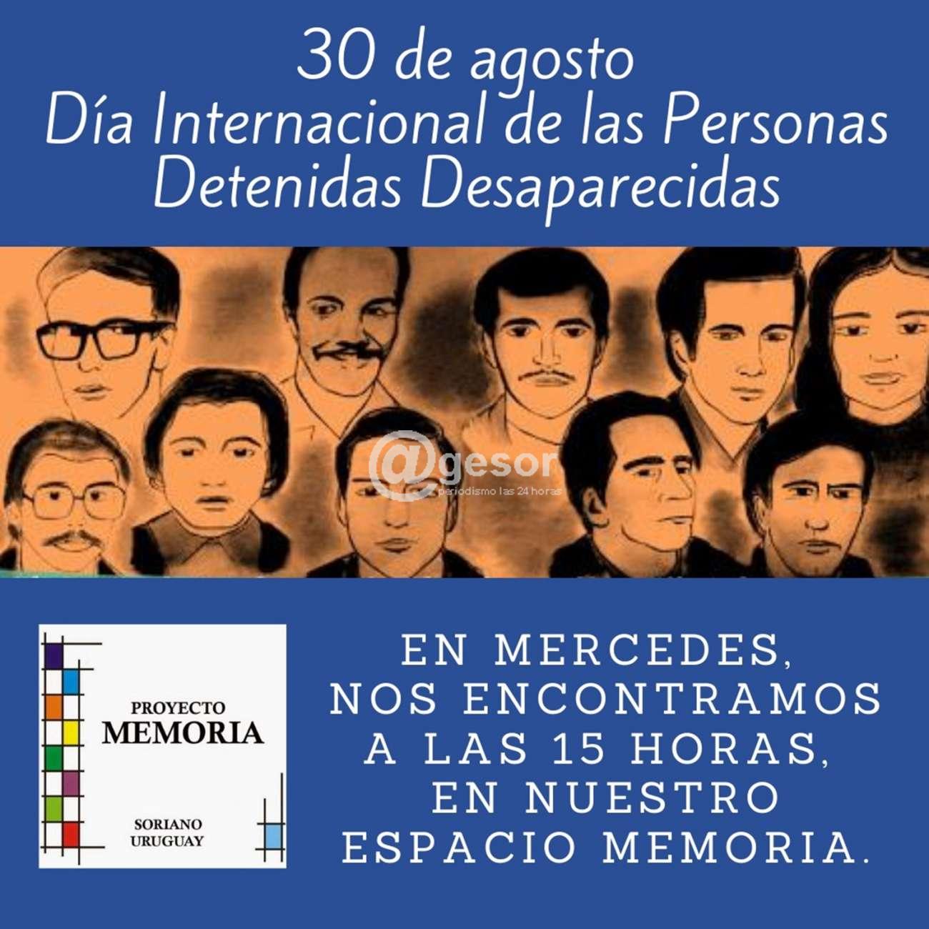 La Comisión Memoria , Justicia y contra la Impunidad de Soriano convocan para este  domingo  30 de agosto a recordar el  Día  Internacional de las personas detenidas desaparecidas.