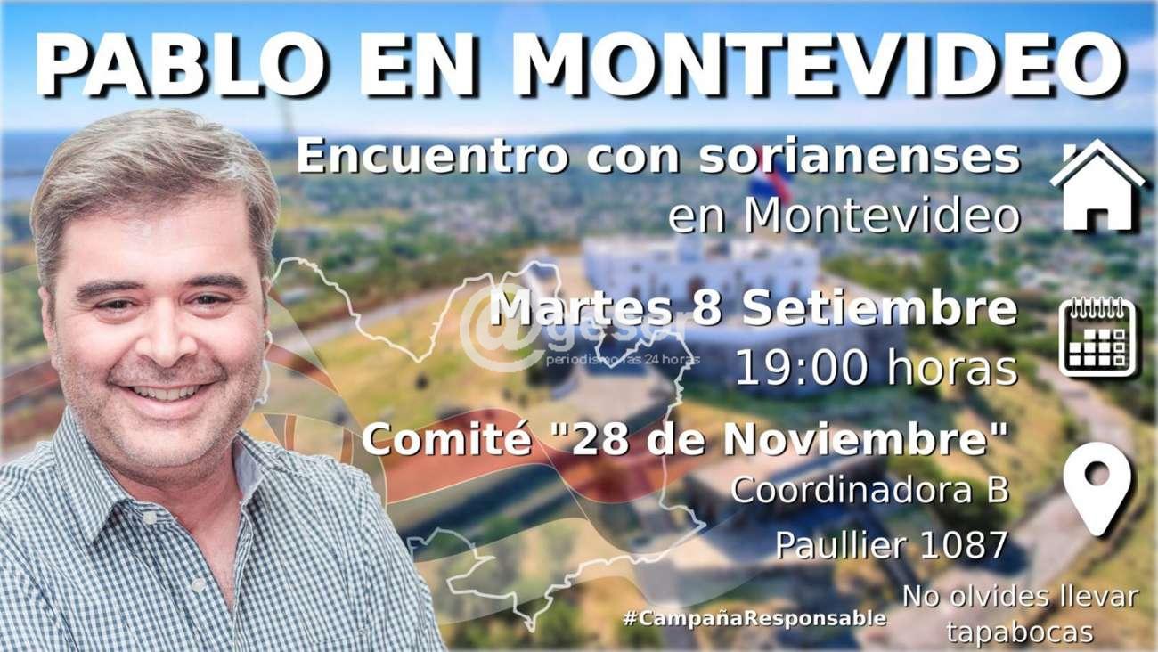El candidato a Intendente por el Frente Amplio, Pablo Ponce, tendrá un encuentro con los sorianenses que residen en Montevideo. Será el próximo martes en el Comité “28 de noviembre”.