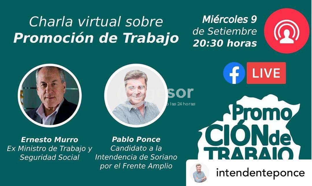 En el día de hoy, a las20:30 hs, el candidato mantendrá una charla en vivo con el ex Ministro de Trabajo y Seguridad Social, Ernesto Murro, para abordar diferentes temáticas relacionadas a la promoción del trabajo en un futuro Gobierno Departamental