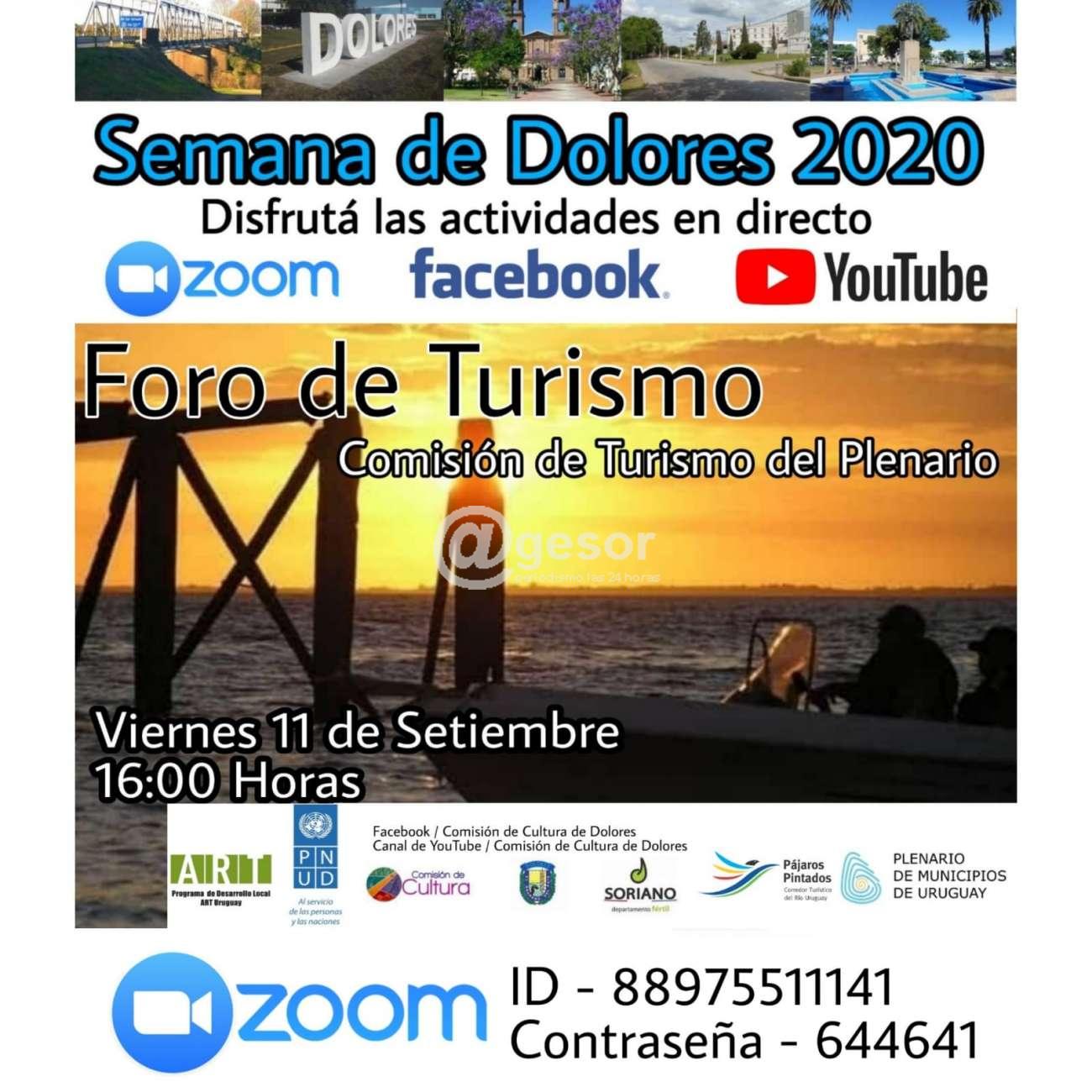 En el marco de la Semana de Dolores 2020, este viernes se realiza un Foro de Turismo. La actividad comenzará a las 16 horas, pudiendo seguirse por Zoom, Facebook o Youtube.
