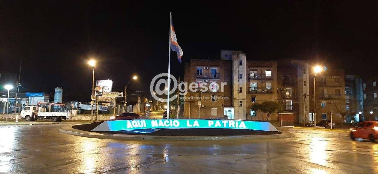 Allí en la rotonda de acceso Este, también se encuentra la leyenda que distingue a Soriano, ¨Aquí Nació la Patria¨