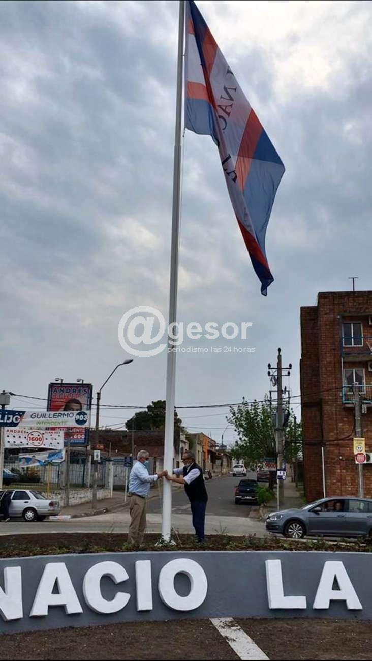 Quedó inaugurado el mástil con la gran bandera de Soriano en la rotonda de accesos a Mercedes de Ferreira Aldunate y Luis A. de Herrera