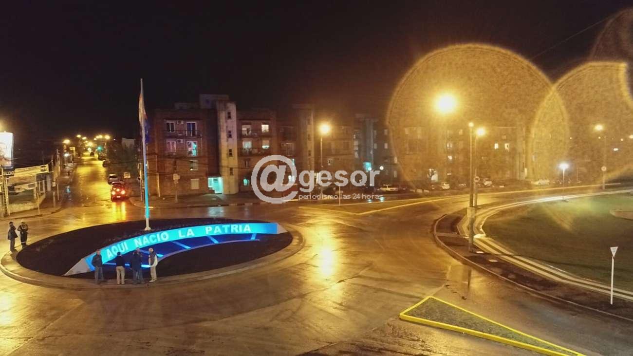 El ingreso  a la ciudad por  esa zona  luce  renovado con la iluminación de la rotonda donde se ubica el mástil con la bandera del departamento.