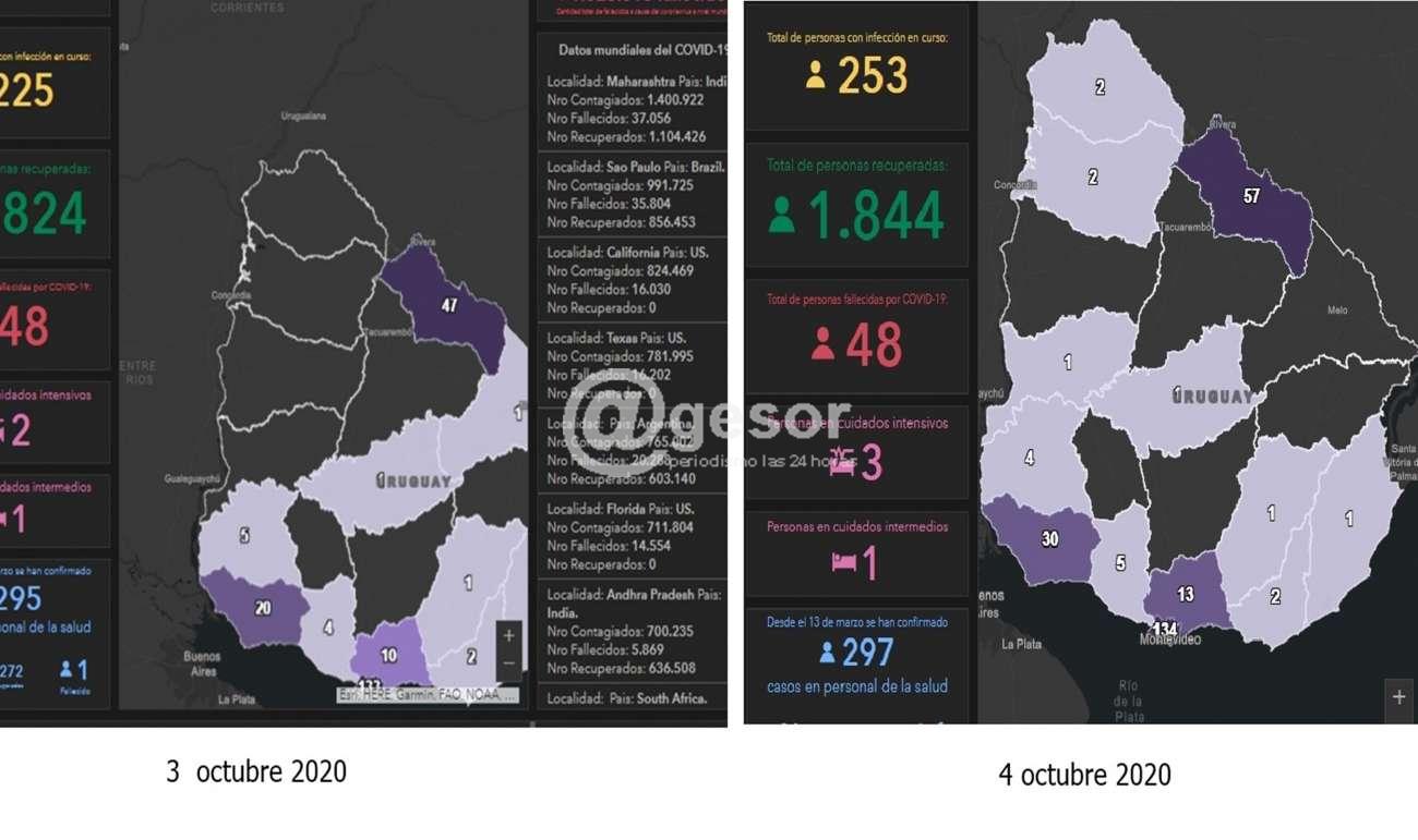 El sábado 3 de octubre el Sinae (Sistema Nacional de Emergencias) informaba que Soriano tenía 5 casos activos de Covid-19. Es decir 4 casos en Mercedes y uno en Cardona. Sobre el mediodía de este domingo el Cecoed informó textualmente: “El Doctor Sarachaga nos informa: dos personas con test positivos en la ciudad de Dolores, se conoce el nexo, siendo este de Nueva Palmira.