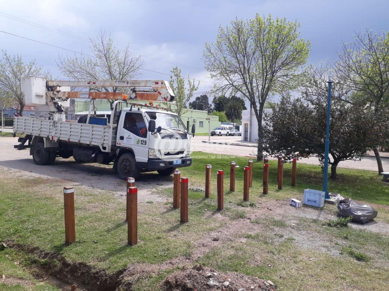 Quedó instalado un moderno sistema de iluminación en los espacios verdes y la zona parquizada junto al Br. Artigas de la localidad de Egaña.