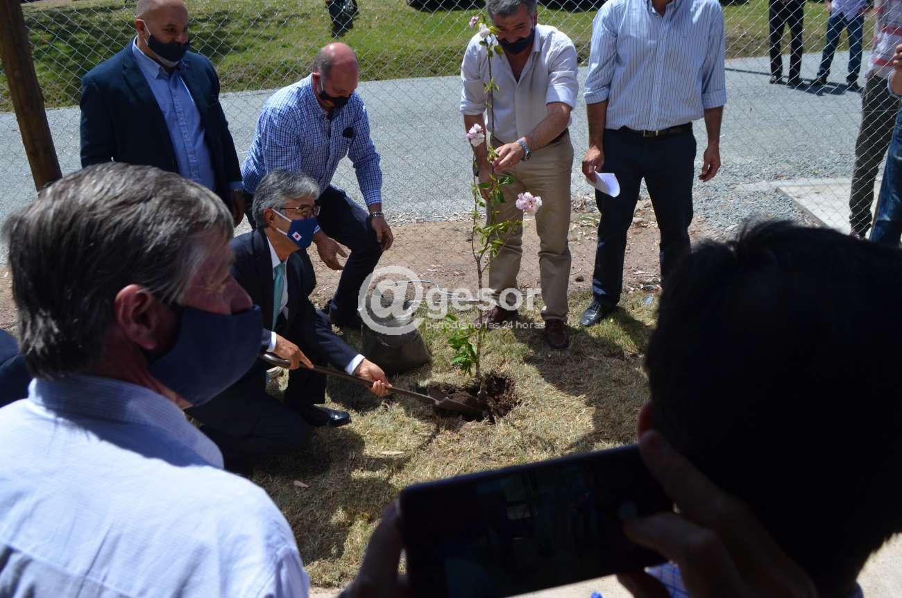 En el acto realizado en el Club de Remeros Mercedes, junto al edificio del nuevo Centro Deportivo Integrado se plantó un Sakura (cerezo) el árbol típico de Japón. En la oportunidad Tatsuhiro Shindo dijo que la plantación de esos dos ejemplares de Sakura representaba “un símbolo de la amistad entre Uruguay y Japón”. Agradeciendo al Club de Remeros Mercedes por la invitación, recordando que en el 2021 “se cumplirá el centenario de las relaciones diplomáticas entre ambos países”. Por lo que desde la Embajada de Japón ya están trabajando para realizar varias actividades en diferentes partes de Uruguay.