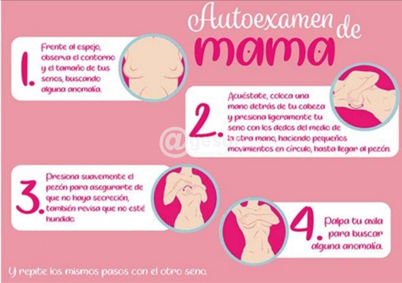 La idea es que tanto la mujer como también el hombre-porque en menor proporción es afectado por tener tejido mamario-pueda examinarse, palparse, y observar sus mamas dado que es la única manera de conocer su aspecto y detectar con facilidad cualquier posible anomalía, cambio.