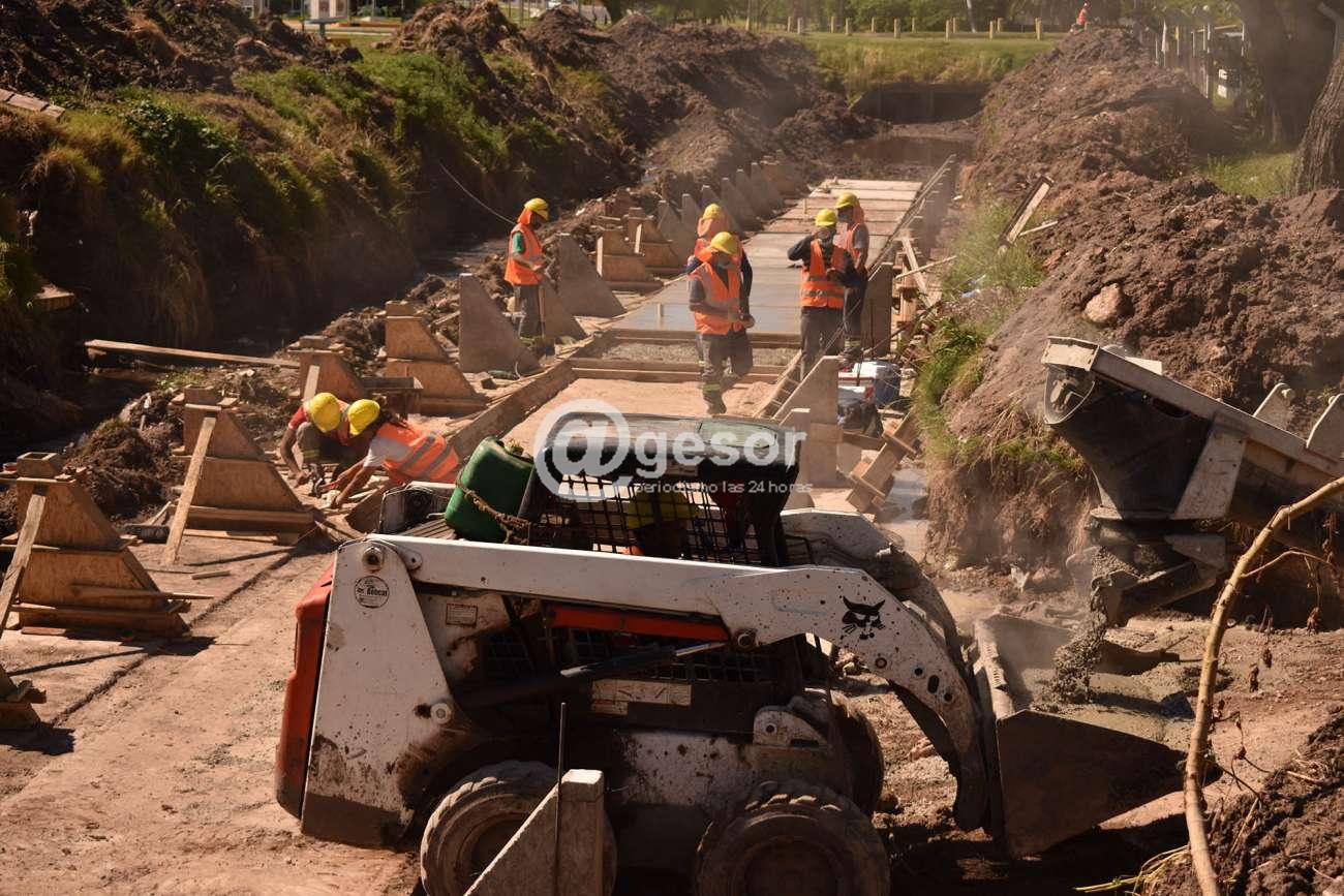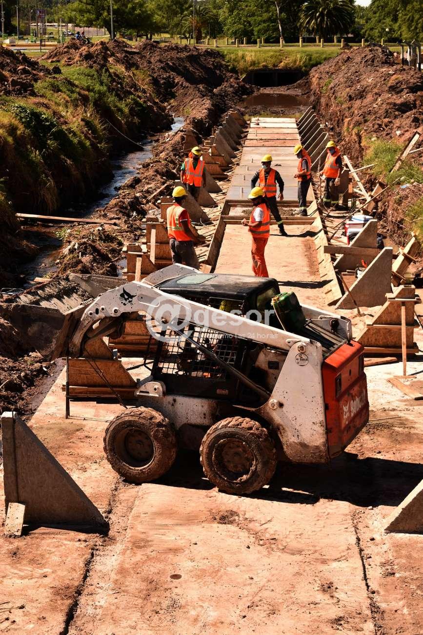 Principalmente los progresos se notan en el canalizado de un tramo de este curso de agua sobre una extensión de 110 metros. Allí se montaron los encofrados para los laterales mientras ya se conforma la base de hormigón que cubre el lecho de la cañada.