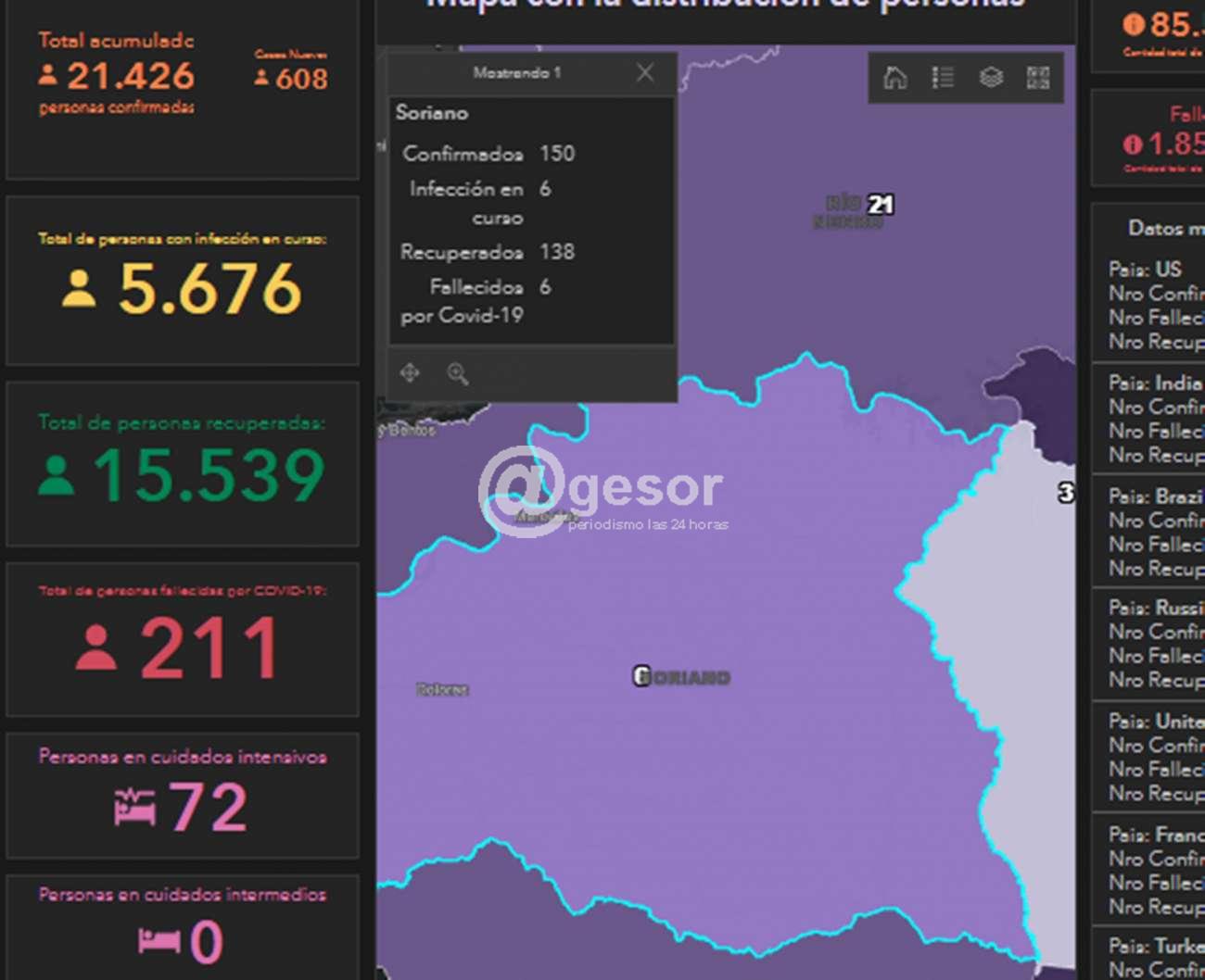 Soriano llegó este lunes 4 de enero a los 150 casos confirmados de Covid-19 desde marzo pasado a la fecha. Este lunes además se confirmó la sexta muerte de un paciente del departamento con la enfermedad. Actualmente son 6 los pacientes cursando la enfermedad y 138 ya se recuperaron.