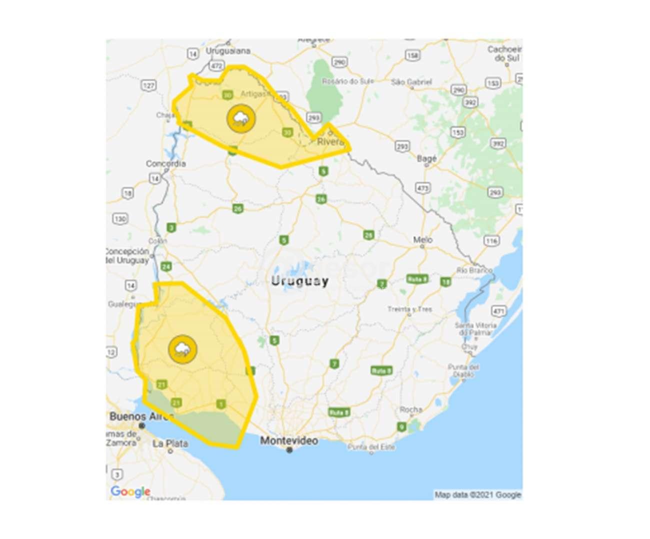 El pronóstico de Inumet para esta zona del país establece la ocurrencia de fuertes lluvias, actividad eléctrica y rachas de viento fuerte.